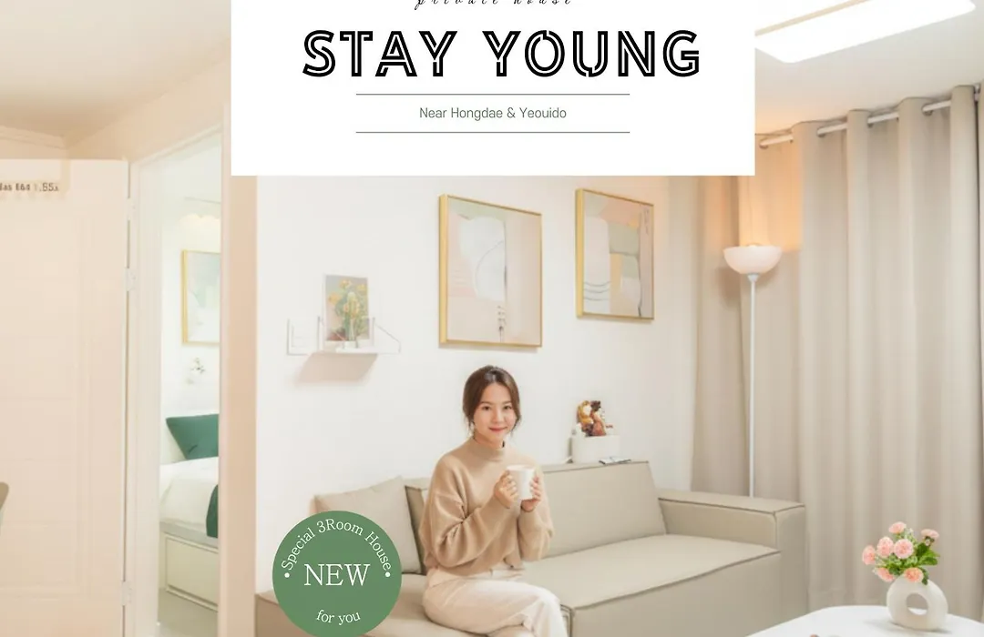 The 60 m² Stay Young #3 Rooms # 5 Beds # Line 2 Line 5 Yeongdeungpo-Gu Office Station #Hongdae # Yeouido Seoul provides swift access to various city landmarks, such as the Bittarae, located about a 5-minute walk away. Car hire is available at this spacious apartment and the area is popular for mini golf and bike riding.